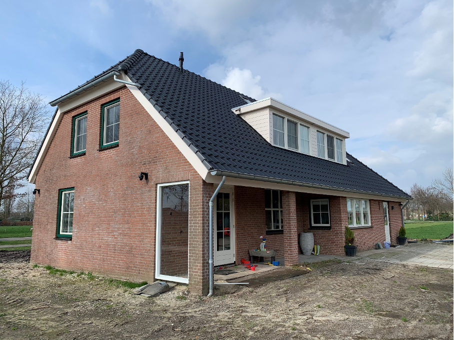 Vervangen dak van landelijk woonhuis. Bestaand pannendak vervangen voor nieuwe gebakken pannen. Bij de vervanging van het dak zijn er geïsoleerde renovatie-dakplaten gemonteerd en deze zijn voorzien van nieuwe panlatten en gebakken dakpannen. Verder is er een grote dakkapel aan de achterzijde van de woning geplaatst en zijn de overstekken/boeiboorden met kunststof afgewerkt.